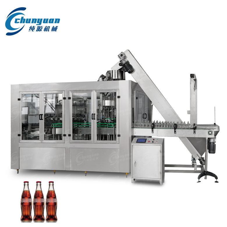 玻璃瓶碳酸饮料设备适用于玻璃瓶装汽水、可乐、含汽饮料、碳酸饮料、鸡尾酒、啤酒等饮料的生产。纯源机械厂家生产供应的
