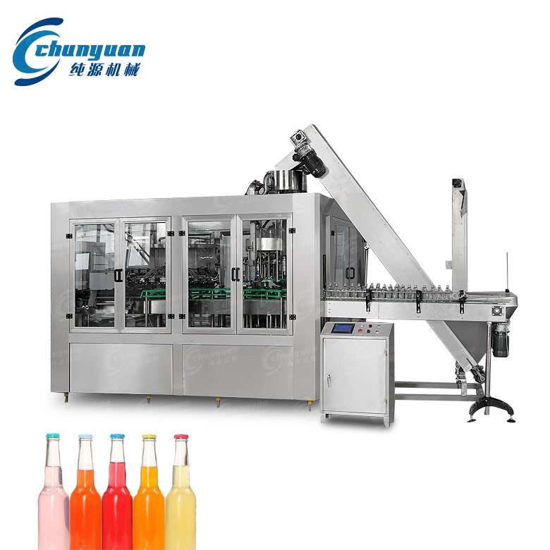 玻璃瓶橙汁饮料机械是纯源机械厂家以国外的先进技术为基础,并根据果汁、茶等饮品的灌装工艺要求研制而成的。玻璃瓶饮料灌装机设计科学合理、外形美观、功能齐全、操作维修方便、自动化程度高,是中小型饮料生产厂家的理想设备。