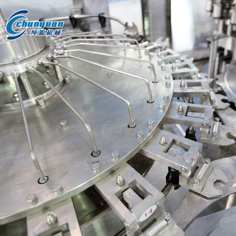 酵素果蔬汁灌装设备是纯源机械采用卡瓶颈传动技术,实现全自动冲瓶、灌装、封盖等工序;该酵素饮料机械自动化程度高;配有完善的温度控制系统和回流系统,设有完善的灌装设备自动清洗系统及控制程序,与液体接触的零件全部采用优质不锈钢材料及食品级橡胶。