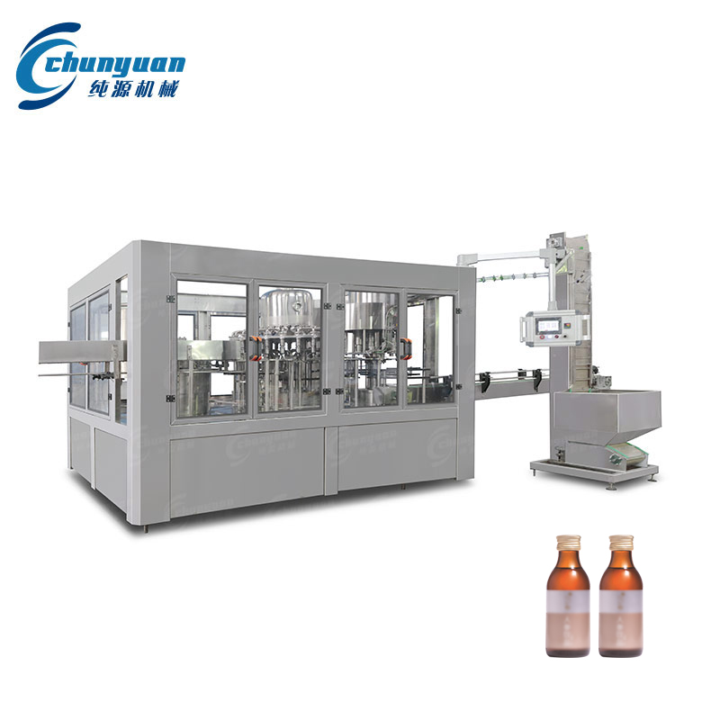 纯源机械厂家供应的椰奶饮料灌装机械是集封口灌装-制盖上盖-电热封口为一体的自动灌装机组,主要适用于PP或PE瓶乳品植物蛋白饮料以及果汁类产品的灌装封口。...