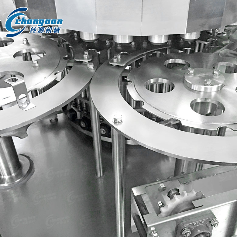 纯源机械厂家供应的乳饮品铝箔盖封口灌装机是集封口灌装-制盖上盖-电热封口为一体的自动灌装机组,主要适用于PP或PE瓶乳品植物蛋白饮料以及果汁类产品的灌装封口。乳饮品铝箔盖封口灌装设备具有结构紧凑、自动化程度高、使用方便、生产效益高等特点。