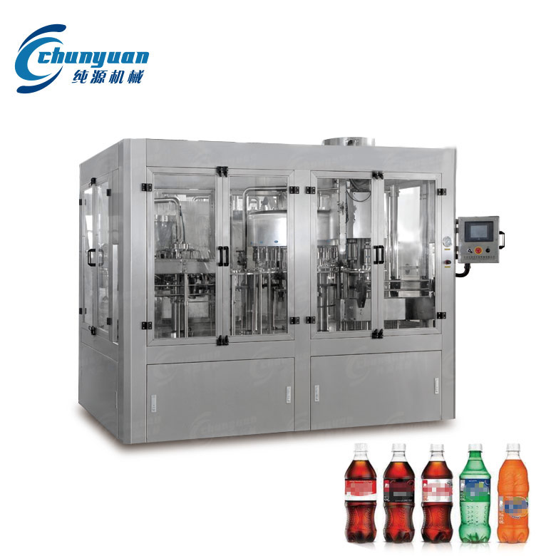 纯源机械厂家生产的含气饮料灌装机械采用不锈钢材料制成。含气饮料设备具有结构合理、工艺先进、操作方便、适用范围广等特点,是中小型饮料厂家理想的生产流水线机组。