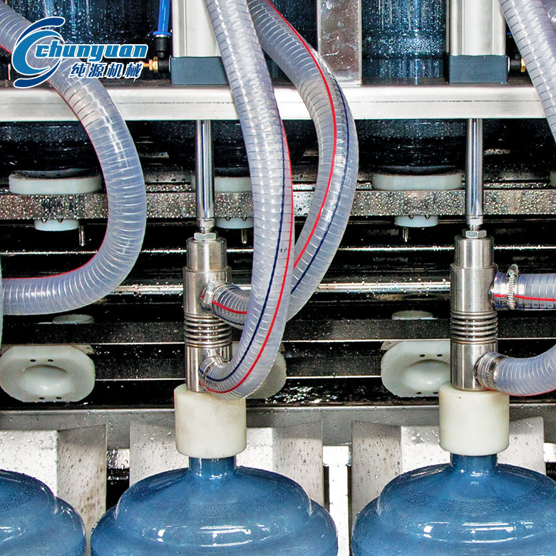桶装水设备采用优质不锈钢制作,耐腐蚀,易清洗。洗桶用内、外喷嘴均采用进口美国喷雾公司独特技术设备。该桶装灌装线设备结构紧凑,工作效率高且稳定可靠,动作灵敏正确,自动化程度高。