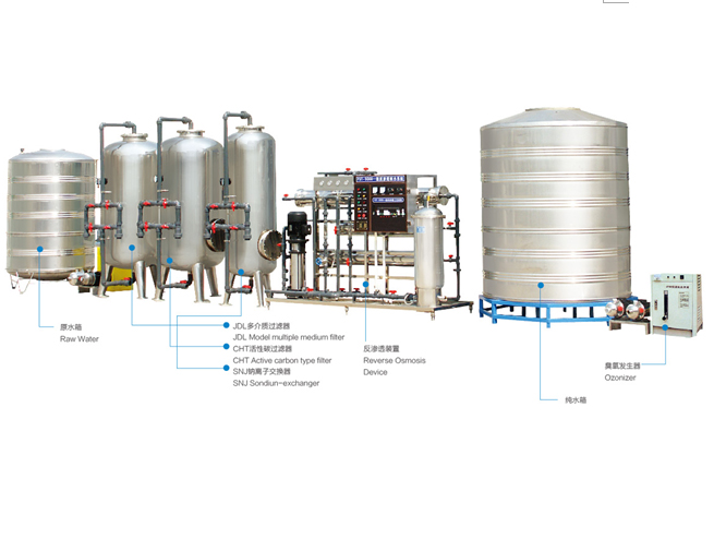 纯源机械的水处理设备制造适用于纯净水、矿泉水、饮料产品水及工艺水的各类水处理设备。主要包括:预处理系统(石英砂过滤器、活性炭过滤器、离子交换器、微孔过滤器),膜分离系统(中空纤维超滤、纳滤器、反渗透主机),灭菌设备(紫外线设备、臭氧发生器)及钛芯棒过滤器等。